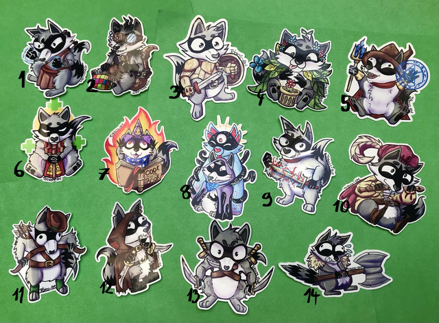 The Newest Collection of Fantasy Stickers this time featering Raccoons as Dungeons and Dragons classes
