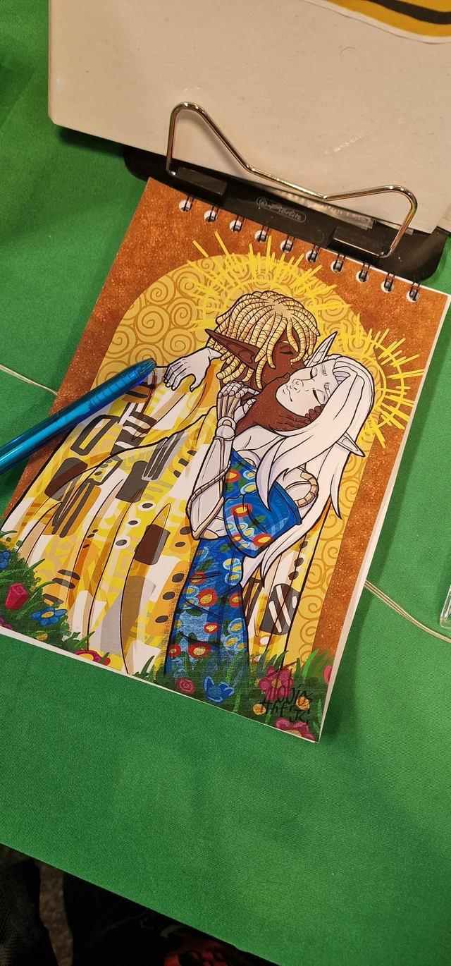 A5 Sized Notebook with the Original Characters Jericho and Tapas inspired by the Kiss from Gustav Klimt